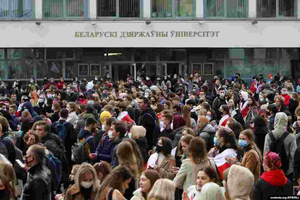 У перший день після закінчення ультиматуму Тихановської студенти долучились до страйку. Вони збиралися на вулицях, проводили сидячі акції у своїх закладах, влаштовували марші. Вимоги: відхід Олександра Лукашенка, припинення насильства, чесні вибори.