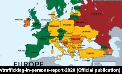 • «Рівень 3» (Росія, Білорусь, Іран, Північна Корея, Еритрея, Алжир, Бірма, Сирія, Венесуела, Туркменістан та інші). Йдеться про країни, які не виконують мінімальні вимоги США із протидії торгівлі людьми.