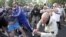 Бійці спецпідрозділу «Беркут» відтіснили народних депутатів та тих, хто протестує проти ухвалення мовного закону, від службового входу Українського дому.